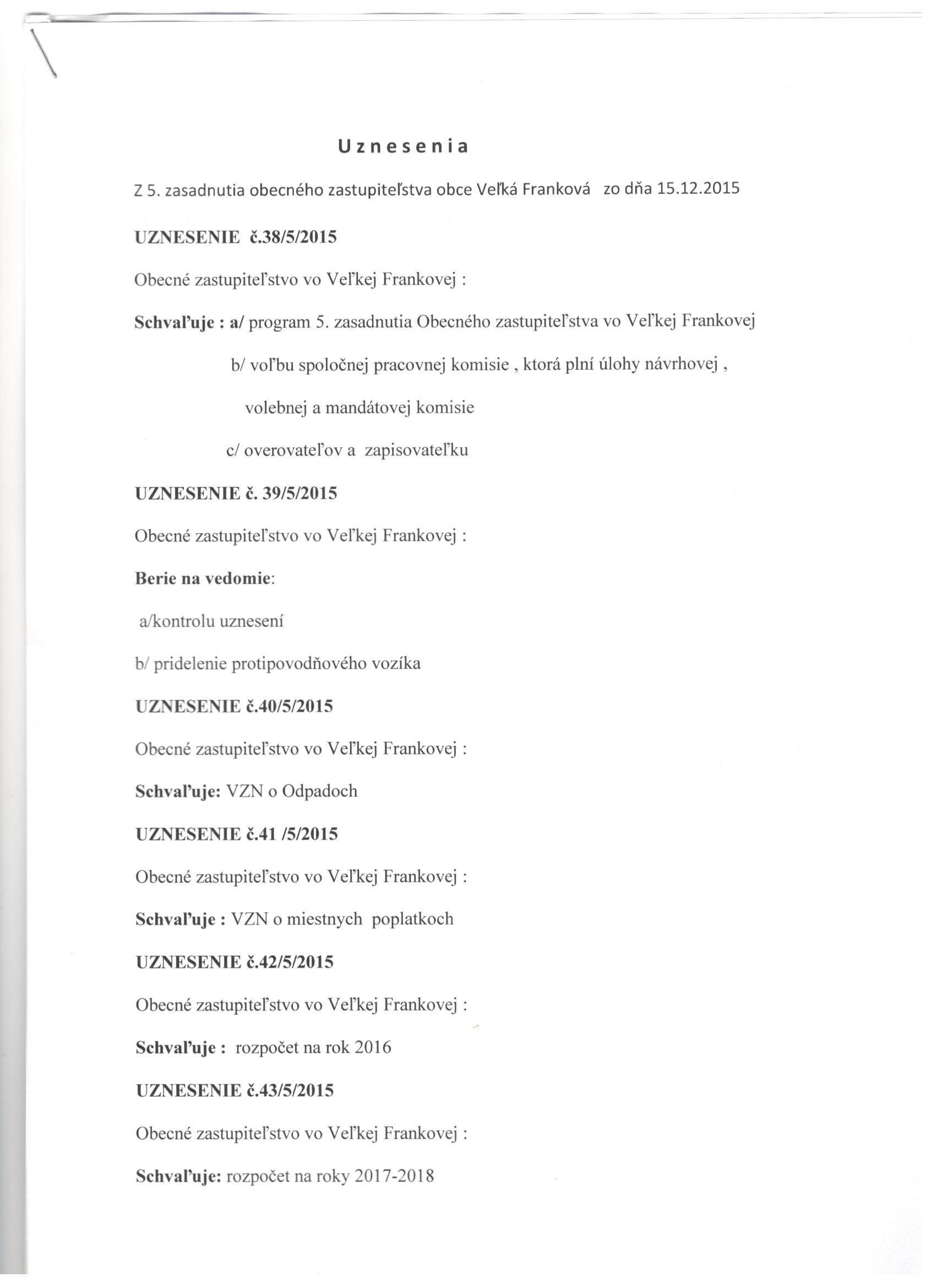 - Uznesenia z 5/2015 zasadnutia OZ